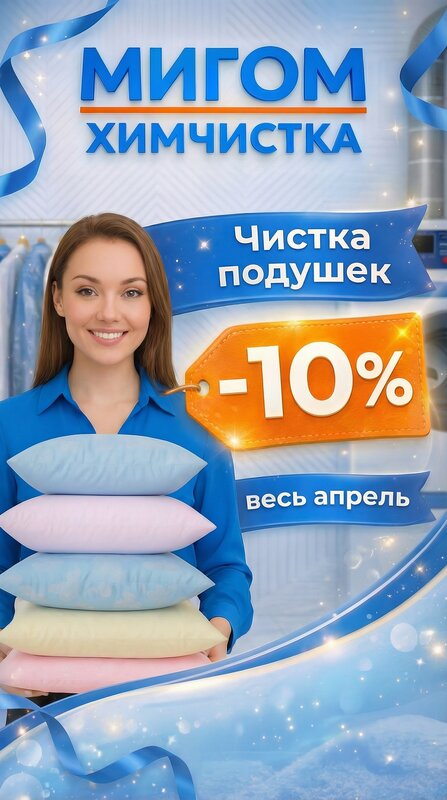 Dry-cleaners:curtains, furnitures, carpets, quilts and coverlets, textile, wedding dresses, baby carriage, furs, leather and suede, pillows and featherbeds, shoes, soft toys, down jackets