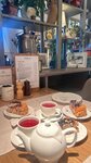 Еда вкусная, подача красивая, атмосфера очень классная. На мой взгляд, конечно, немного завышен ценник. Заказ нужно делать самостоятельно на кассе, есть так же их магазин, где можно купить чай, кофе, варенье и море вкусностей. Пока ждала подругу, обратила внимание, что столы не протерли, всё в крошках и следах от стакана. 30 минут ожидания и никто так и не подошёл вытереть стол, в итоге, когда подруга пришла пересели за освободившиейся столик.