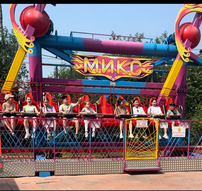 Спасибо, что живы. Мотает , кидает ого-го, а со стороны смотришь вроде ничего, спокойно. Не рекомендую детям 8-10 лет (хоть и разрешено) пришлось держать ребенка одной рукой, почти выскакивал и тяжело удержаться ему было за поручни, кресла пластиковые скользкие. Микс постоянно раскручивает и кидает вниз, на успеваешь отдышаться. Для любителей острых ощущений, а я в след раз лучше в тир.