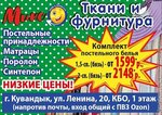 Большой выбор тканей и швейной фурнитуры. Бесплатный пошив постельного белья из ткани ассортимента магазина. Работает швейный цех, ремонт и изготовление одежды на заказ.