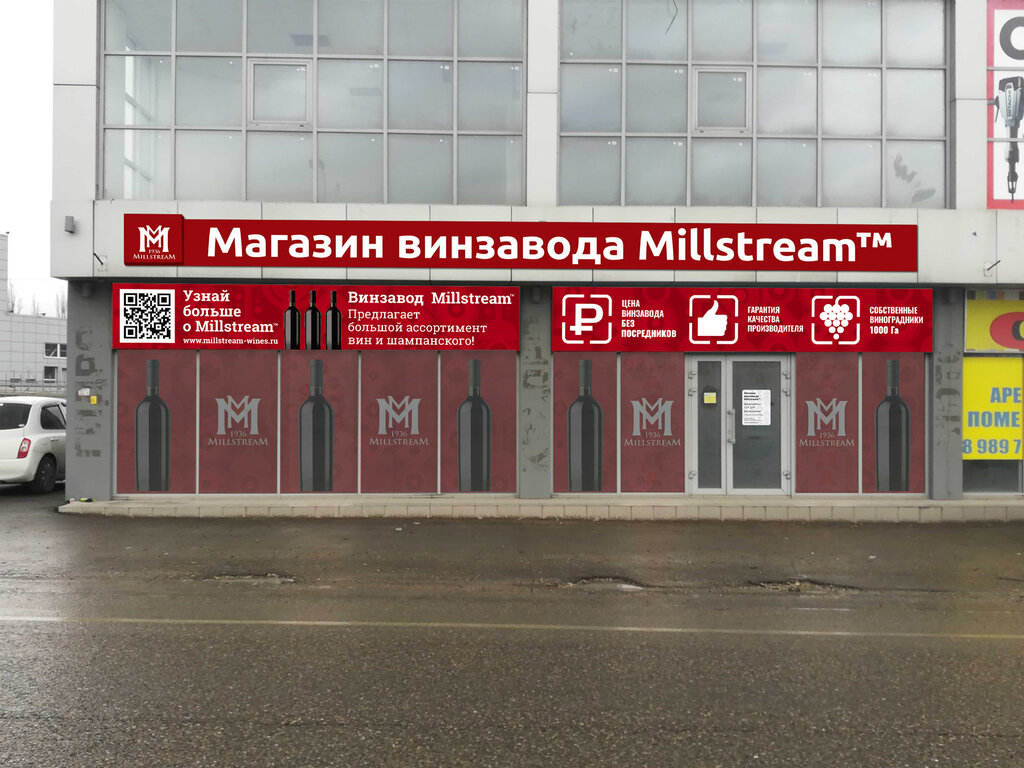 На снимке магазин на этапе строительства! Реально,он занимает лишь небольшую часть здания и работает по принципу - магазин-склад! Т.е.нет прилавков,товар занимает весь зал.Ходишь,выбираешь, оплачиваешь. Попробовал вина "Мильстрим"! Доложу,что был приятно удивлен их ассортиментом и качеством,весьма достойным!! Следует посетить и продегустировать...