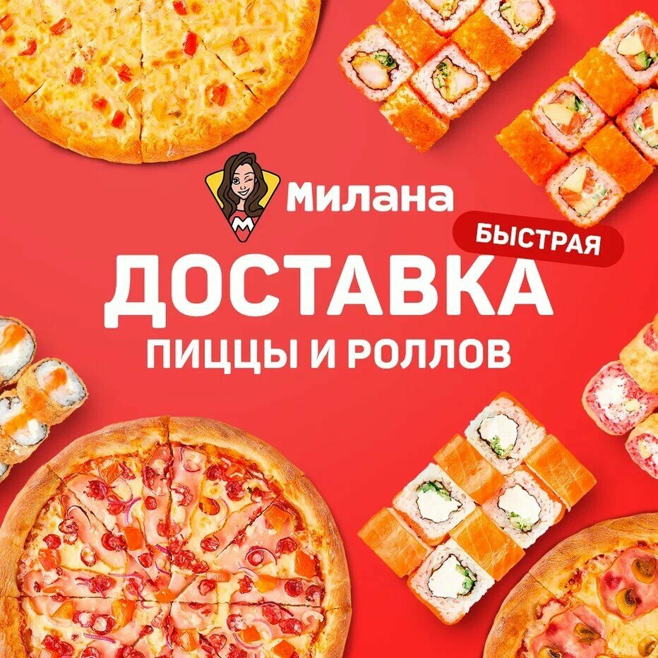 Вкусные роллы и пицца. Являюсь постоянным клиентом пиццерии Милана. К качеству претензий нет, но в последнее время ожидания доставки роллов стало очень долгим, в выходные дни и праздники доставка более 2-х часов. Поэтому приходится искать альтернативу...только из за времени. Пиццерия пользуется большим спросом, возможно, стоит увеличить штат поваров и доставки)) процветания вам!