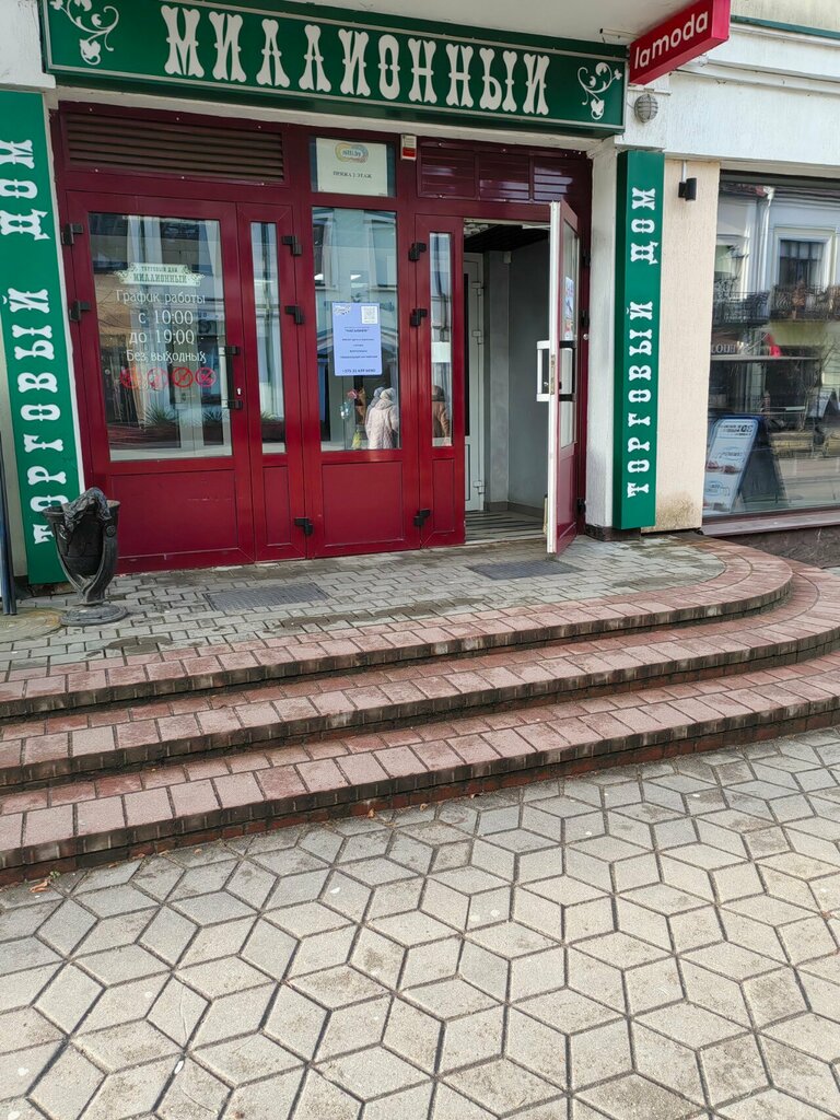 A half-empty shopping mall. There are few interesting shops. I went to get vinyl records, got in on the third attempt (the pavilion is closed during business hours, the phone was not answered). I bought the records like a pig in a poke, because the device did not work or (I got the impression) the guy was not competent. As it is. I was not impressed with the assortment. In general, "Million Dollar" is not for Spontaneous purchases....