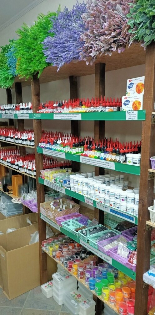 Handicraft stores:ornamentation, packing, tools, soap base, molds for soap, dyes, flavors