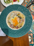 We went to have dinner while walking along the beach. They immediately brought the menu, water with lemon. I really liked the atmosphere, the interior design, the service, the serving and the taste of the dishes - everything was restrained, but with taste and soul. The music is also very pleasant and calm. We took two mashed soups - mushroom and pumpkin, as well as drinks - coffee and a cocktail. Everything is fine, the pumpkin soup is a little sweet. The coffee is rich. The portions are not too large, but everything is aesthetically pleasing and delicious. It arrived quickly enough. The restaurant owner was also in the hall, helped, speaks and understands Russian. Thank you for your hospitality. I recommend.