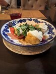 Муж любит грузинскую кухню, и когда охото поесть такую, идем в Мимино. В целом, хорошая кухня, лучше в Калуге мы не находили. Заказывали лобио и шашлыки с люля. Лобио был восхитительным, люля и шашлык сочными и вкусными, но вот овощи которые на гриле, мне показались приготовленные во фритюре, уж очень они получились жирные, это не претензия, а моя личная придирка, может я ошибаюсь и они действительно приготовлены на мангале, но я не доела их, хотя овощи гриль я люблю больше чем мясо. Расстроилась и вряд ли снова захочу заказывать это блюдо. Креветки меня порадовали, их в блюде не пару штук плавает, а прилично так! В соусе сливочном и чесноком, восторг!