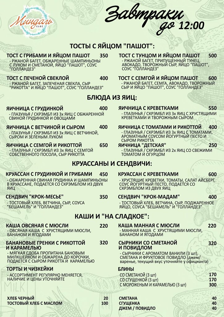 Небольшое кафе местного значения на территоии ЖК. Самое то, если нужно перекусить, но лень готовить или куда-либо добираться. Как раз по такой причине приши сюда с семьёй на завтрак. Меню довольно компактное, но подобрать себе что-то по вкусу и аппетиту вполне можно. Взяли тост с тунцом, скрембл с томатами и рикоттой, блинчики -впринципе всё вполне вкусно, без проблем повторил бы. Слегка недосол, но это не проблема -соль/перец на столе. Единственное, что может вызвать дискомфорт - это скорость готовки. Заказ на троих занял около 40 мин и выдавался частями. Видимо у ребят кухня совсем небольшая и возможности её чисто физически ограничены. Для нас это проблемой не стало, мы никуда особо не торопились. Но если торопитесь -наверное могут случиться накладки. В остальном вполне нормально: довольно качественно, бюджетно, вполне комфортно.