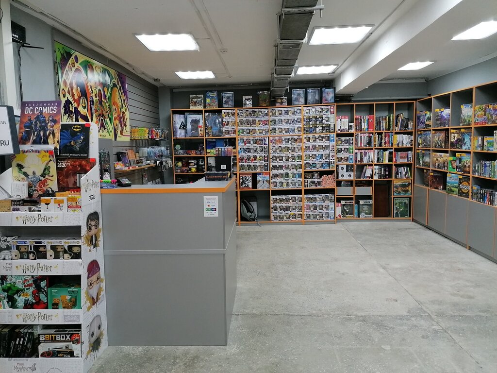 Большой выбор настольных игр, как для детей так и для взрослых, в принципе на любой возраст. Есть комиксы, DC, Marvel, Bubble, и другие издательства. Фигурки Funko в большом ассортименте. Самое главное, что есть большое пространство для того, чтобы поиграть в настолки. Говорят, что будут проводить мероприятия разных форматов, как только так сразу.