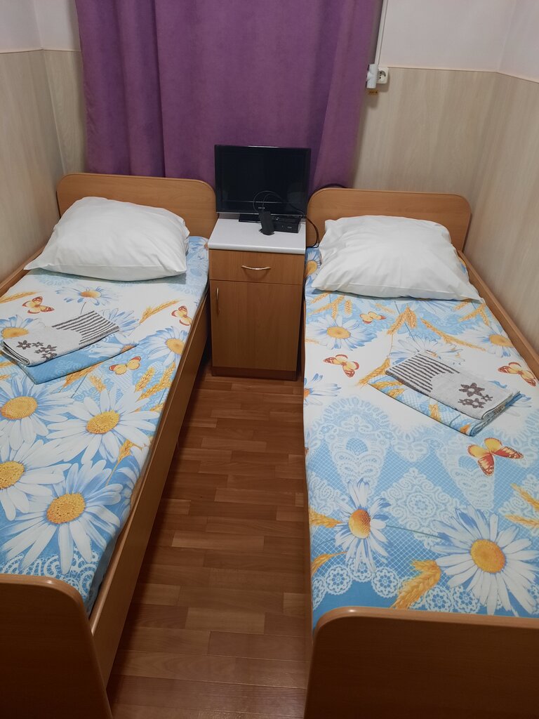Комнаты узкие, квадратов 5-6 если не меньше. Приехали +- к 10, вроде не так и поздно, но отношение такое будто ворвались в 3 ночи)) Если вы ростом 170+ кровати будут для вас узкими, короткими то есть спать придется согнувшись. Цена 2к за 2-х местный и за 3-х местный 3к