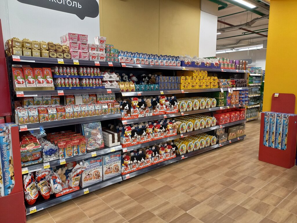 Эта Лента выручает, когда во врем работы хочется попить колы или съесть вкусную булочку) ну и местные жители ходят сюда за продуктами. 2 кассы самообслуживания, что очень удобно