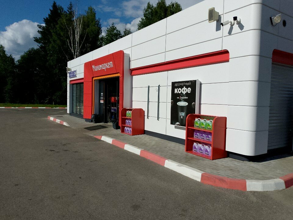 Новая заправка. Удобный подьезд. Вежливый персонал. Большой тороовый зал, цены на товар конечно завышены, но по пути можно брать. Удобная, комфортная зона с мягкими диванами для того чтобы выпить чашечку кофе или северного чая с плюшками. Туалеты М и Ж также туалет для инвалидов с пеленальный столом для мамочек
