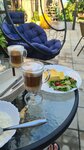 Очень красивый гостевой дом. С хорошим качественным ремонтом, с хорошей мебелью, текстилем. Все очень современно, чисто. Видно, что делали с любовью и с хорошим вкусом. Большой телевизор плазма, в номере есть холодильник, чайник, чай, кофе. На балконе столик и стулья. Есть удобная сушилка. Территория радует глаз, газон, розы, юкки, гортензии. Все ухожено. Есть летняя кухня со столиками, где можно готовить. Если не хотите готовить, можно заказать завтрак. Столовая очень красивая, чистая. С утра сразу настроение прекрасное на весь день. Завтрак стоит 300 р. Очень вкусно и каждый день разное. Обязательно каша и что-то ещё или сырники, или оладьи, или омлет или шакшука. Сервируется все как в ресторане. Вкусный хороший кофе, чай. До моря недалеко. Спокойным шагом с ребёнком максимум 10 минут. Хозяева очень доброжелательные. Красивая пара Андрей и Анастасия и их родители Валентина и Александр. Видно сколько вложено любви и труда. При таком высоком качестве удивила невысокая стоимость. В Крыму сложно найти хорошее жилье по приемлемой цене. Это просто находка.