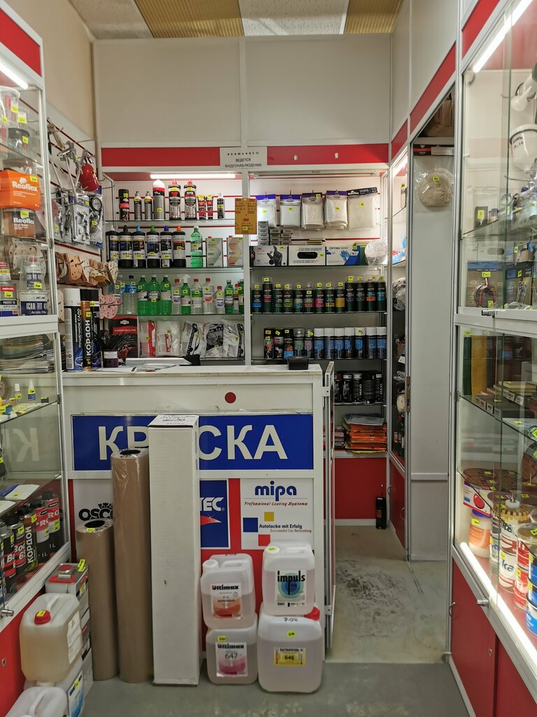 Заказывал краску с подбором в RAL. Мешают за 10 мин. Есть оплата картой. Находятся внутри рынка автозапчастей. Парковка и удобный съезд на ярославку.