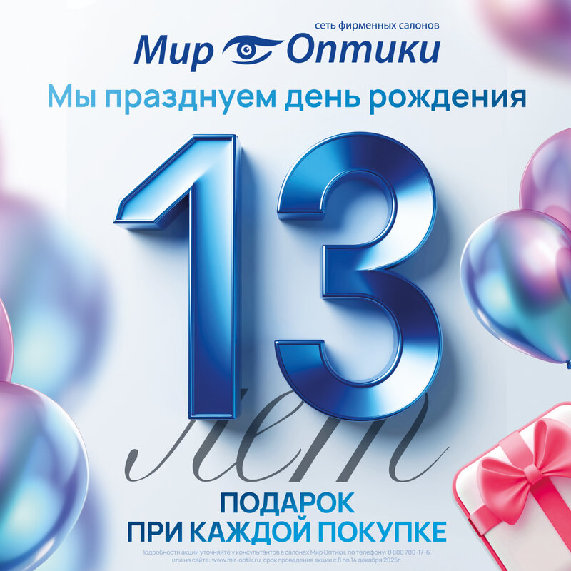Успей получить! Наш день рождения — твой подарок! 13 лет «Мир Оптики» 🎂 Друзья, задуваем 13 свечей! В честь этого мы объявляем большой пра...