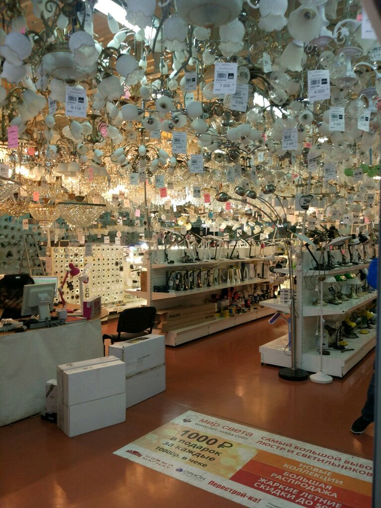 Люблю этот магазин. На небольшой площади большой выбор светильников, ламп, люстр, бра. Товары на любой вкус и кошелек: от минимализма до "дорого-богато". Есть товары производства России, Китая, европейских производителей, Турции. При мне обращались по гарантии с диодными лампами, обменяли, мне по гарантии обращаться не приходилось. Есть скидки на остатки товара. На все товары ценники чуть ниже, чем в крупных сетевых магазинах. Рекомендую.