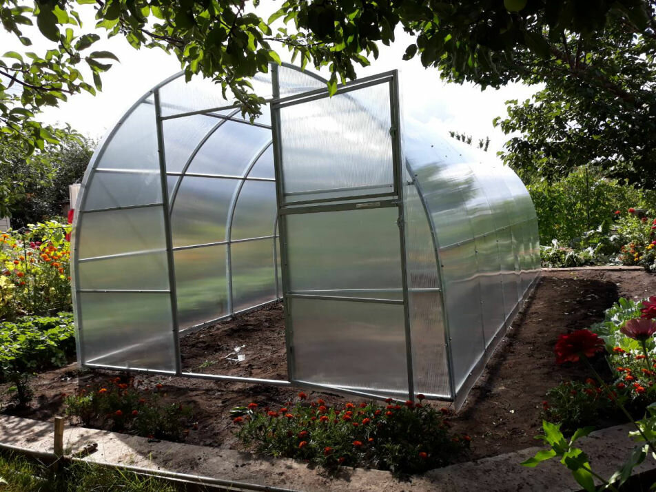 Из оцинкованной трубы 25/25, 9 продольных перекладин Сотовый поликарбонат 3,5 мм Соединения сварные
