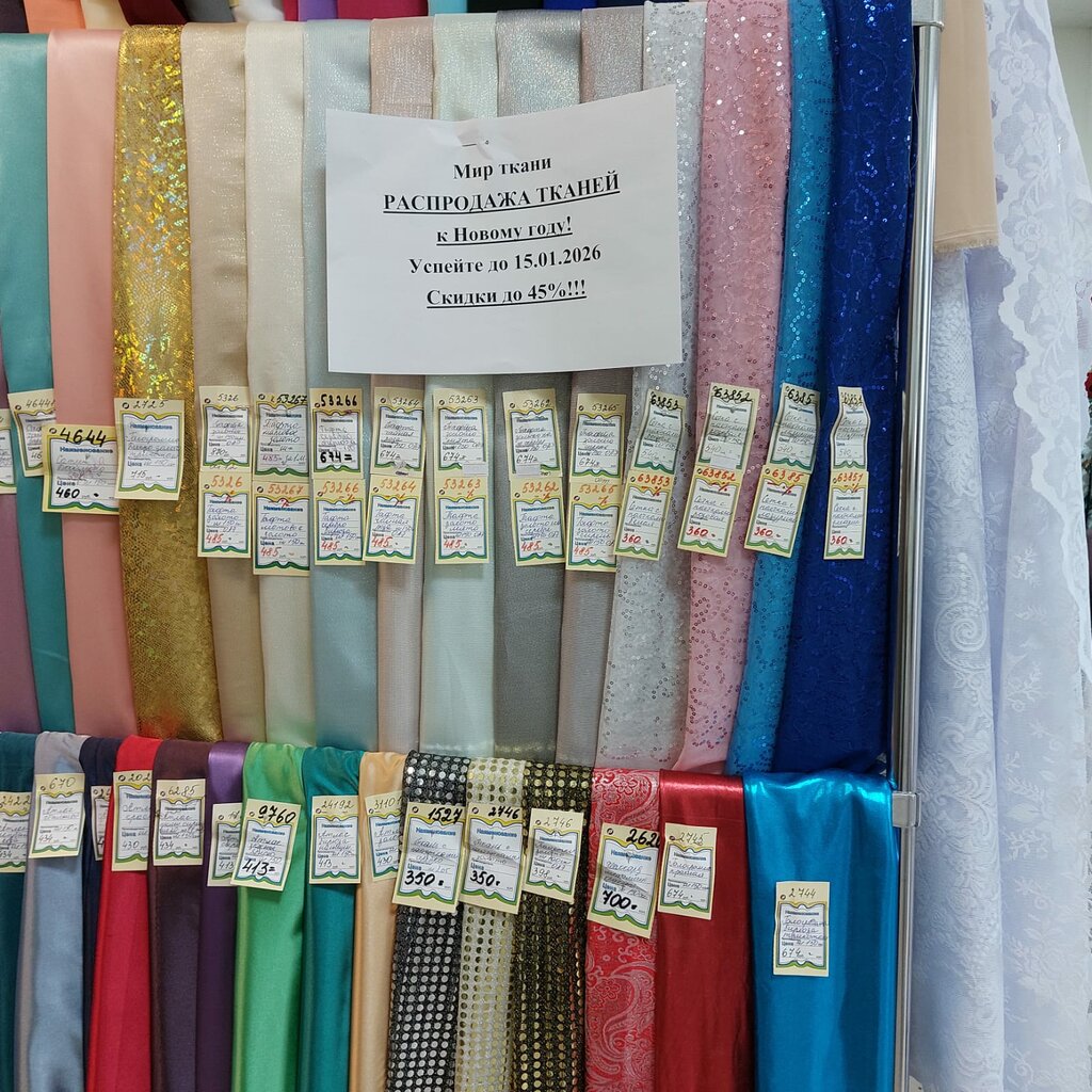Магазин хорош для меня тем, что близко находится и есть парковка. Нет возможности ездить куда-то далеко, поэтому за новым отрезком ткани, тесьмой, нитками... езжу сюда. И всегда могу что-нибудь подходящее найти. Продавцы приветливые, не навязчивые и необидчивые, если уходишь без покупки. Пару раз приходилось покупать остатки. Скидки нет на них, хотя было бы приятно. В общем, я этот магазин давно люблю! Часто вижу обновление ассортимента. Цены на ткани вполне адекватные.
