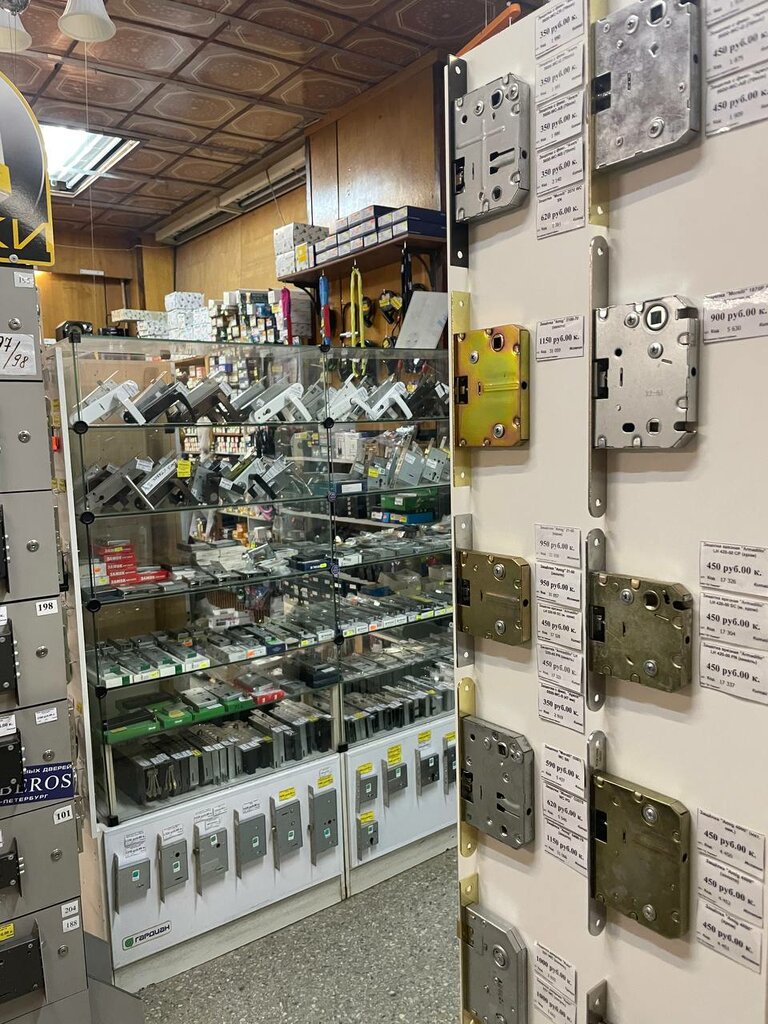 Есть всевозможные замки, личинки, цилиндры, ручки. Подобрал личинку к старому финскому замку советских времён - не пришлось курочить дверь под новый замок. Продавщица общительна и вежлива с желанием помочь в покупке-решении проблемы.
