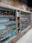 Очень чистый магазин. Входная группа сухая и теплая. Ассортимент разнообразный. Есть гибкая система скидок. Всегда вкусная, горячая выпечка. Уютная зона кафе. Есть кассы самообслуживания и аптечный пункт. Приветливый персонал магазина