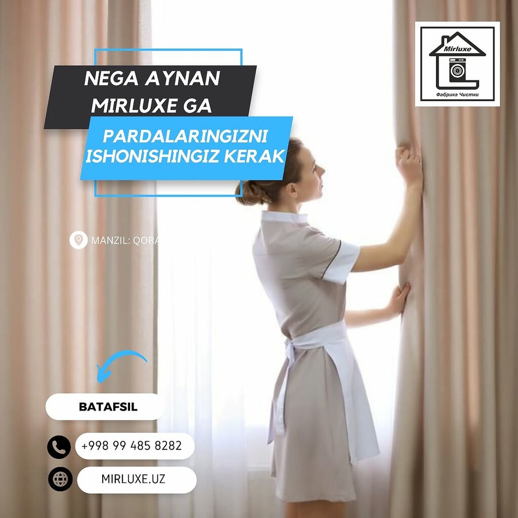I'm happy with this dry cleaning… Convenient location… Very bright reception… Very friendly and attractive receptionists… They clean perfectly… Cleanliness is the key to health… I Recommend It To Everyone… Good luck to you MIRLUXE company