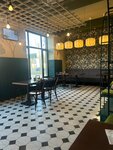 Интересный интерьер, не долгая подача, Красивый и интересный интерьер,?удобные посадочные места, разнообразие блюд и напитков, множество посадочных мест, чисто, имеется разетки у столиков, имеются карандаши и раскраски для детей, демократичные цены . 👍