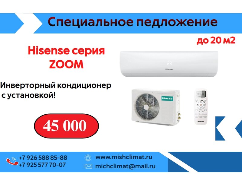 Инверторный кондиционер на 20 м2 с установкой за 45 000 т.р.