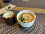 Заказывала салат с хрустящими баклажанами, из салата съедобные только помидоры, баклажаны горькие, немного компенсируют их вкус только соус( которого очень мало) . Том ям худший из того что я когда нибудь пробовала 2 креветки на весь суп+ маслянистые пресные кальмары. Бульон как будто вода с добавлением кучи острого перца, том ямом тут и не пахнет. Коктейль сакура тоже не очень- кислое смузи с непонятными кусочками. Ждали том ям 30 минут при почти нулевой посадке