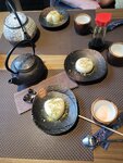 В общем, пришел взять домой покушать, заказал пару горячих блюд и 2 моти на десерт (японская дыня и "новинка" с матча кремом) Для начала: при заказе немного смутило, когда я хотел заказать лапшу пад-тай, официант спросил, знаю ли я, что это такое и что она достаточно специфичная. Немного напрягло, но ладно. Лапша с говядиной в перечном соусе помечена как острая, но по факту там и соуса то не чувствуется, не говоря уж об остроте. Моти "новинка" никак не обозначен в вкусах, так и написано и всё. Спросил, что официант может посоветовать из моти, он просто сказал, что одного нет. Ну ладно. Не суть. Заказал, сказали, что ожидание 15 минут. В итоге прождал я 30, и моти положили вместе с горячим. По итогу получил я посредственные блюда, пресные, но норм. А вот моти: прям плохо. Они, судя по всему, из заморозки, пока донес до дома (я их достал из пакета с горячим) они остались твёрдыми внутри. По вкусу тоже плохо, девушку чуть не стошнило от дыни, мне норм, но текстура прям желе какое-то плотное, крем какой-то тягуче противный. Ну и размер крохотный) В общем, точно не пойду сюда