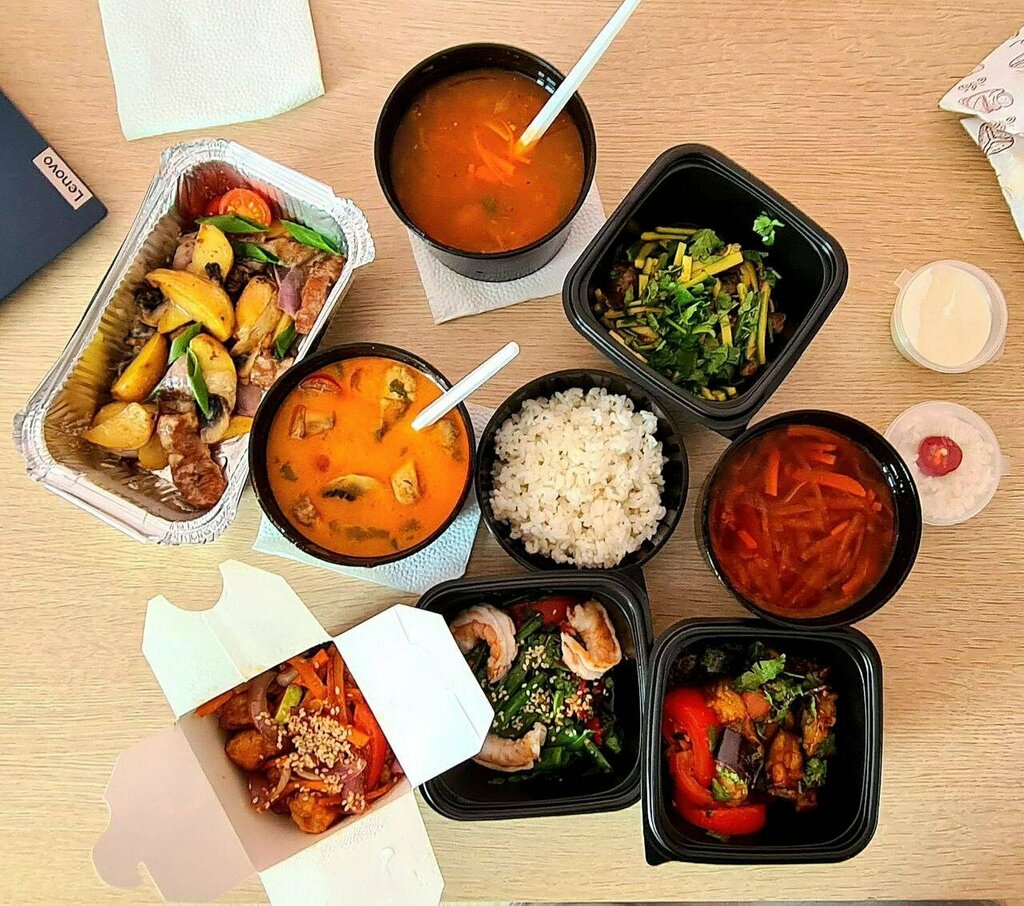 Variety of food:sushi and rolls, pizza, fixed meal, сhinese food, home cooking