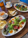 Очень давно хотела сходить в это место и честно говоря расстроилась. Пришли с подружкой в хорошем настроении и нас встречает уставшая хостес,точнее не встречает,а сидит в телефоне и обратила на нас внимание только после просьбы с нашей стороны подобрать нам стол ,я все понимаю,все мы люди и у каждого есть свои какие-то дела,но если пришли гости и наверное нужно убрать телефон и проводить за стол,если хостес хотя бы как-то разговаривала,то женщина на гардеробе пугает,честно неловко как-то было, несколько раз возвращалась за личными вещами,которые лежали в куртке и ни слова она мне не сказала,положила номерок на стол подвинула его мне моей же курткой без никакого «добрый день» и «ваш номерок» и тд. Официанты молодцы,меню знают хорошо,могут сориентировать,да и просто приятные ребята,но девушка забыла дать сахар к чаю,но в этом ничего страшного не было ) Сама работала в общепите на разных позициях и как все знают,люди приходят не только за вкусной едой,но и за приятными впечатлениями,одно неверное движение и впечатление может испортиться моментально,к сожалению с хостес и гардеробом так и произошло(