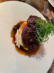 Классное место, уютное, атмосферное. Брал Flank Steak - мягкое мясо, отличная прожарка, очень вкусно. Тартар был хорош, но показалось слишком много соуса не чувствуется вкус мяса. Жена брала салат из тунца, супер, советую. Ну и конечно десерты, подача сферы топ и вкус супер, медовик был тоже восхитительный.