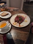 Самые вкусные стейки города, однозначно. Браво команде, которая делает поход в ресторан маленьким гастро-праздником:) шоколадная сфера стала приятным сюрпризом для «стейковой» - хотелось аж тарелку облизать! Интерьер довольно обычный, но атмосфера в целом уютная. В рабочее время регулярно хожу на бизнес ланчи, стейк тунца - моя настойчивая рекомендация, обязательно попробуйте!