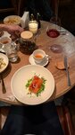 Upd: Визит2 прошел так же прекрасно. Было ещё удобнее, ТК почти никого не было, был выбор столов. Английское меню есть, это важно! Все блюда очень маленькие и дорогие, всё-таки, в сравнении с Европой и Израилем, но норм в сравнении с тем, как у нас принято. И все ещё очень вкусно, ко всем блюдам подобраны удачные соусы. Том Ям мне вообще не зашёл - слишком острый, слишком соленый, мало гущи. Зато индийцу в нашей компании было вкусно, он оценил - наша обычная еда ему как будто пресная, а тут было достаточно специй. Но я всё-таки представляю вкусы большинства)) Визит 1: Забронировала столик онлайн на ужин с родителями, все сработало. Мы пришли раньше -гуляли с другими родственниками и устали. Сотрудники были очень гибкими и пошли нам навстречу, всех разместили. В итоге в какой-то момент нам было в два раза больше, чем ожидалось, но нам дали дополнительные стулья. Еда очень вкусная, порции достаточные в сравнении с другими ресторанами. Мне понравился том ям, мой индийский муж оценил салат с креветками тандури. Ещё ели палтуса, Нисуаз, бургеры, ризотто, все было очень вкусно. Десерты тоже отличные, Монблан красивый, сочетание безе с холодной клубничной начинкой просто супер! Не очень зашёл клубничный чизкейк, показалось, что это больше мусс, чем чизкейк, уж слишком мягкий (не плохой, просто заказывая чизкейк, ожидаешь что-то другое). Ещё по совету из комментов взяли шоколадную сферу, она красиво дымилась, сыну понравилось. Счёт на 9 человек вышел около 17700, в целом, одного блюда +десерт достаточно, чтобы наесться. Стоимость каждого блюда от 800 до 1400 примерно.