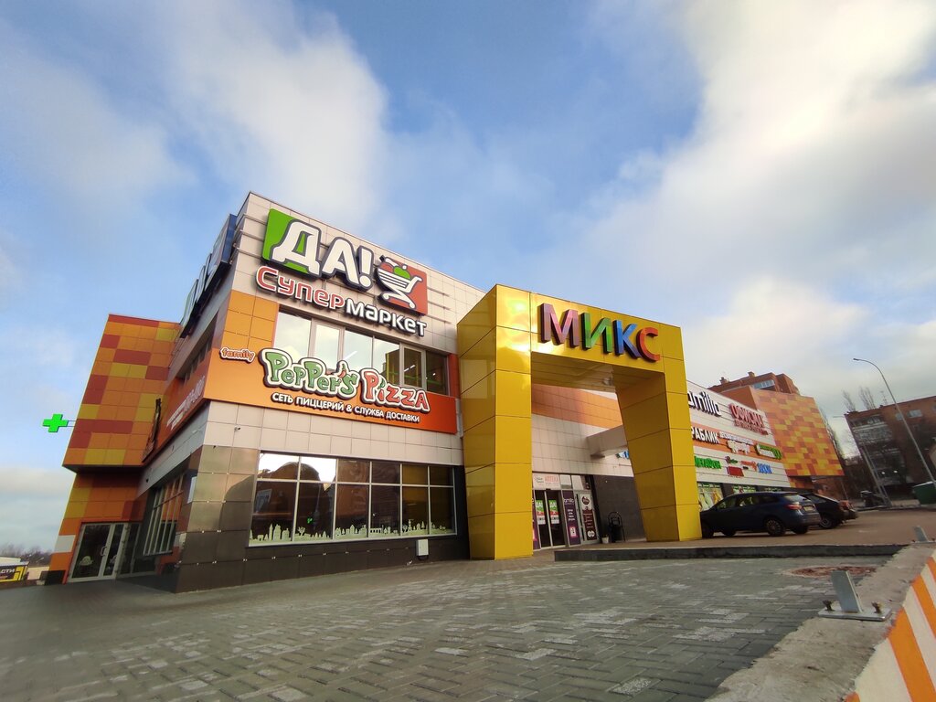 Много различных магазинчиков, большой магазин -ДА, так же большой магазин канцелярских товаров, есть магазин детских товаров -Кораблик, детская парикмахерская, там же можно и ушки проколоть)Магазинчик все для шитья, детская игровая комната где можно и ДР отметить и просто поиграть с ребенком. Пиццерия -Пепперс , много всего. Нам нравиться , часто бываем.