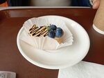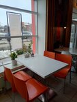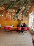 Кофе нормальный, но четь пережарен. Булочка была мягкая, однако качество изюма меня смутило, какой-то привкус. В кафе много людей, много людей с детьми. Наверное было бы хорошо, если бы сделали детский уголок. Столов можно было -бы чуть сдвинуть, но добавить уголок, а то дети разбредаются по всей столовой, галдят.. Если бы было место с игрушками было бы чем их занять. При таком наплыве посетителей с детьми, думаю мамочкам/ папочкам тоже было бы проще следить за ребятами. Музыка мешает посетителям, создавая звуковой шум, и суету, потому кажется что в столовой шумно, хочется поскорее покинуть место