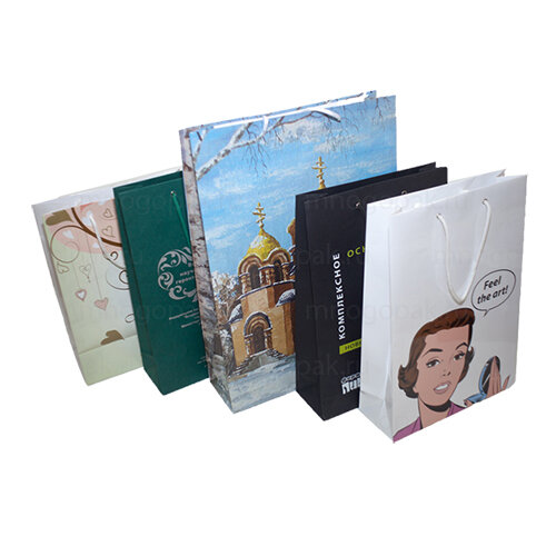 Печатаем пакеты из бумаги тиражом от 1 транспортной коробки (примерно от 250 штук в зависит от размера) с цветностью до 2 цветов. Также возможно изготовление пакетов из картона на заказ. Плотность пакетов от 120 г/м2 до 300 г/м2.
