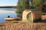 В начале 2014 года в нашей жизни появилась Мобиба МБ-103 и комфорт нашего походного быта буквально взлетел на новую высоту - не было такого дня в поездках когда бы не топилась баня: в ней парились, мылись, грелись в холодную погоду, дети забегали погреться после купания в северной прохладной воде - и все эти функции она реально выполняла на отлично. Во время за пределами поездок она с весны по осень стояла на дачном участке и использовалась регулярно. За 8 лет такой интенсивной эксплуатации пришлось пару раз подварить печку и каркас полока (полок пострадал по нашей вине), сама же баня стойко переносила холод, снег, зной, ураганные ветры и только после 8 лет такого нещадного использования сдался тент - материал под воздействием погодных факторов и более чем активной эксплуатации после очередного сильного порыва ветра лопнул. Повторюсь, это после 8 лет активнейшей эксплуатации в зачастую очень сложных условиях! По меркам жизни походного инвентаря и снаряжения - она реально вечная, запас прочности колоссальный. В прошлом году по финансовым обстоятельствам не смогли себе позволить восстановить баню и поехали в Карелию без нее. Долгожданный отдых, восхитительнейшая природа, прекрасная погода, старые друзья, но… Почувствовали как качество отдыха заметно просело без любимой бани и твердо решили в обязательном порядке восстановить ее к следующему сезону. И вот, в этом сезоне мы связались с компанией "Мобиба" и ждем обновленную модель МБ-103М3! Отпуск пройдет на высоте!