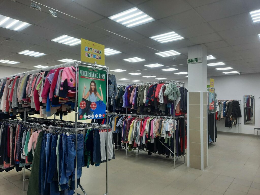 +Good price technology +Convenient location - Although this is a second, but a fairly large part of the clothes is suitable exclusively for homeless people or housewives who collect floor cleaning rags - There are a lot of collective farm clothes, which is repulsive - Small selection