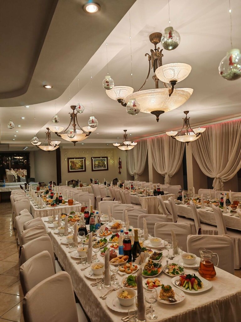 So I got to the wonderful Modern restaurant.Well, let's go)I know him firsthand.I was celebrating my wedding and a friend's wedding there.Honestly, I was satisfied. It was a hell of a wedding ..hassle, tears, joy, dancing, songs....probably like any normal wedding)))I don't feel like it anymore))as an institution of norms.Not Michelin, but it has a place to be))the cuisine is delicious.the price is acceptable.Everything is adequate and flexible in terms of service and ordering.the interior is normal for me.classics of the genre, as they say.Well, friends, major repairs inside have probably not been done since the opening.by the way, they seemed to be planning repairs.Maybe they did.but it doesn't seem to me that much will change there.Well, I think it's a decent place, but not a premium one.and it's the only one in the neighborhood.jubilee, I mean.Well, there is also the truth of the chalet.Well, they're kind of premium.although I wouldn't say) and so modern is the place where you can celebrate an event for 50 people, probably.you can go out in the evening to eat, drink, chat if you're tired of home and too lazy to drag yourself to the cent.I think it's normal to celebrate a birthday.again, for small events, I think the place is more for locals.it is located in an apartment building.That's the same thing.I think it gives an imprint on the work of the institution in terms of time and noise.Outwardly, too, probably everything has not been measured for 20 years.It would be possible to upgrade.Well, it's a matter of money.Overall, it's a good place.We should check about the dining complexes.