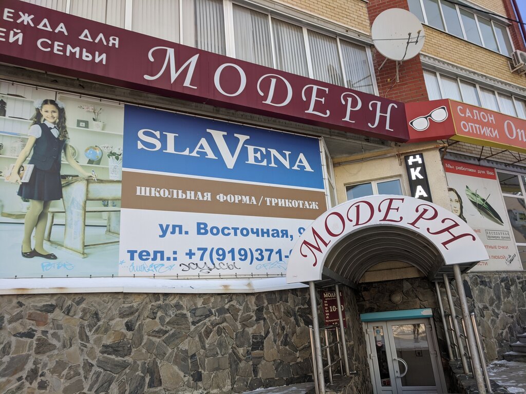 Я одеваюсь в Модерне лет 13. Очень нравится!И верхняя одежда,и спортивная,и платишки,и кофточки,а какой выбор шапок,палантинов каждый год!обувь удобная и недорогая!все вещи модные,красивые,порой креативные и индивидуальные,в других магазинах такого выбора нет.Продавцы приятные и отзывчивые!Спасибо за такой магазин,просто палочка-выручалочка!