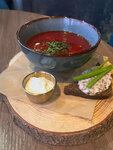 Хорошее место для тихого семейного вечера. Понравилось, что в меню особенная кухня — кролик, оленина, разные виды рыбы. Классических позиций тоже достаточно. Разные виды травяного чая тоже понравились. Что брали: Бифштекс из оленины Жаркое из кролика с овощами — такое «спокойное» блюдо, для тех, кто хочет более простой, нейтральный вкус — более постный Борщ — очень вкусный! Все положительные отзывы в комментариях ниже заслужены Бургер с говядиной — очень вкусный! Добавить нечего Чай облепиховый — для любителей этой ягоды, очень насыщенный и витаминный Чай-глинтвейн — понравилось, что не приторный. Как малиново-фруктовый чай, приятная база Интерьер простой, не совсем современный, можно над ним поработать. Но все чисто, неприязни не вызывает) Персонал вежливый, дружелюбный. Тут вопросов, в принципе, нет Что не очень понравилось — скорость кухни. Изначально заявляли ожидание 25–30 минут. В итоге одно блюдо на одного гостя несли больше 40 (не засекала, но точно не 30) — при условии, что другим гостям за столом принесли за это время все их 4 блюда. Аргумент — много заказов на кухне, хотя в зале было совсем не много людей. Нам было не так критично такое ожидание, но в случае более важных поводов, плохого настроения гостя, высокой степени голода и т.д. — момент будет сильно подпорчен) Место рекомендую, но без эффекта вау