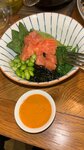 Лосось, водоросли вакамэ, бульон мисо, сливки, рис, лук зеленый