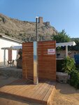 Отличный пляж, всегда играет музыка, пляж обустроен, есть кафе, душ и туалет бесплатные! На пляже работает диджей и аниматор, проводит утреннюю зарядку, детям устраивают пенную дискотеку! Вход в море чистейший! Один песок, нет ни камушка ни водорослей! Комфортно и малышам и взрослым - не нужно идти 300 метров до глубины, как на пляжах Евпатории, буквально через 10-15 метров начинаешь погружаться, метров 50 от берега уже хорошая глубина. Всем рекомендую! Только найти его не просто, дороги как таковой нет, одно направление) но местные жители подскажут как пройти, поверьте оно того стоит!