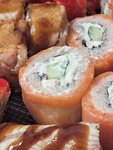 Заказали в 5:30 на дом, в итоге в 8:30 пришлось ехать самим за ними из-за ошибки курьера... Горячие роллы никто не предложил переделать, а за такую задержку дали 10% скидки) Сами роллы были уже помятые, рыба отдавала морской тиной. Запечённые свежими были бы очень вкусными