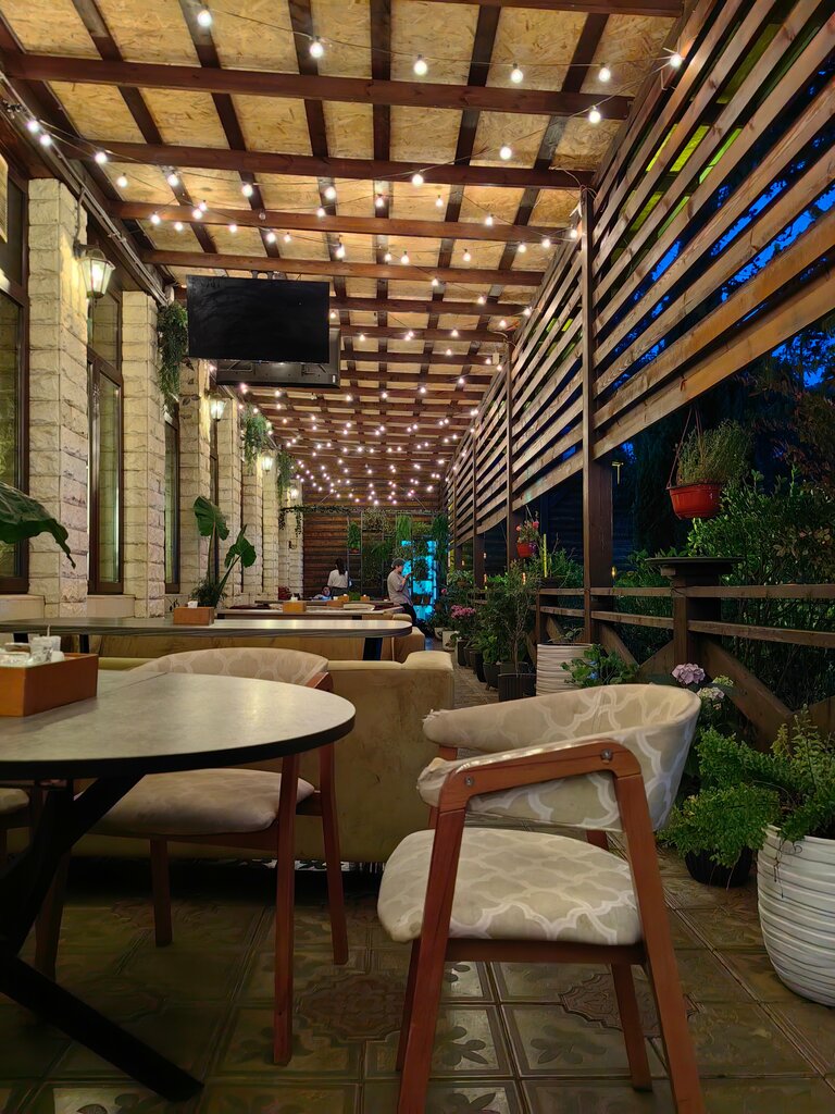 We came together in the evening, there weren't many people, the music was pleasant and unobtrusive. We sat down on the veranda, and the waitress immediately came up to us (someone left a review that they had been waiting a long time). We took khachapuri, Oriental roast and a decanter of lemonade. We ate too much! The portions are huge! Everything was sooooo delicious!They asked me to take them with me. A waitress girl came up several times and asked if everything was okay/if there was anything else? In general, we were satisfied) Tips are not included in the receipt, so leave the guys at least something) I definitely recommend the place