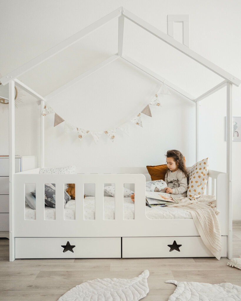 -Безопасный бортик, который ставится на любую сторону. -Ортопедическое основание -Дополнительное спальное место или вместительные ящики для игрушек! -Массив березы Разные размеры и цвета. Доставка, подъем, сборка.