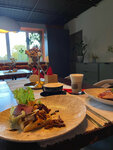 It's a mediocre institution, and there are several others in the city that are much higher in level. I'm not ready to go there the second time. Let's start with the interior: it seems to be quite good, but looking at the walls (namely, the slopes, pipes), doors, and toilet, it gives the impression of imperfections, as if they invested in something and left something as simple as possible. There were scattered grains of sugar and congealed wax from candles on the tables. The service was good, although the person bringing food and drinks looked like a man from the street - there were no identifying marks of the establishment or uniforms. On food: we tried cheesecakes and benedict waffles with salmon. Waffles are just a set of ingredients, there was no integrity to the dish. The waffles are also very dry on their own, at least add cottage cheese to soften them. The cheesecakes are not bad, except for one of the three, where there were lumps instead of a uniform texture. Drinks: bumble and tea were not bad