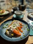 Все началось с слабого запаха столовки. Бесконечной болтовни персонала. Ребята даже не додумались включить музыку. Специально было обозначено кому какое блюдо, но в итоге я съела салат и закуску, а муж сидел без еды. Научитесь подавать одновременно. По еде: Салат с лососем - норм Брускетта с лососем - норм Бефстроганов- минус Капучино - лайк Общий вайб слабенький. Теперь я поняла почему нет почитателей. Надеюсь ребята изменятся.