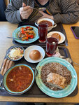 По рекомендации экскурсовода, после экскурсии посетители это место Насколько же вкусно абсолютно всё, суп, перловая каша с судаком, плов мясной с говяжьей котлетой, оливье, кофе, чай с облепихой, тирамису, и в дорогу пирожки, это просто гастрономический восторг, цена вопроса 1450рублей😁 Рекомендую 👍