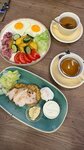 Посетил данное заведение с дочкой 11лет на завтрак 27.10.2025г. Предварительно изучив отзывы. Негативные читал, сложилось впечатление, что просто хотелось людям докопаться. Постараюсь быть объективным в суждении. На яндексе максимальная оценка - пять звезд. У данного кафе - 4,7. Смотря что сравнивать, но более 4 итого я бы не поставил. 1. Хостес - указала на возможность оставить вещи в гардеробе, мы послушались, сами себе гардеробщики. 2. Официант не ориентируется в составе